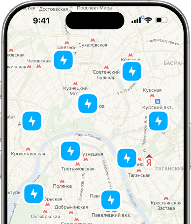 Выберите зарядную станцию в приложении Заряд или Яндекс Go.